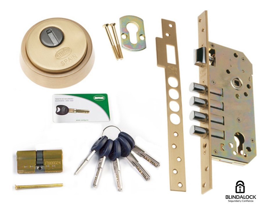 Cerradura de alta seguridad AMIG con 4 puntos de anclajes + Cilindro especiales multipunto Anti-Ganzúa y Anti-Bumping + Protector de cilindro Anti-Taladro.