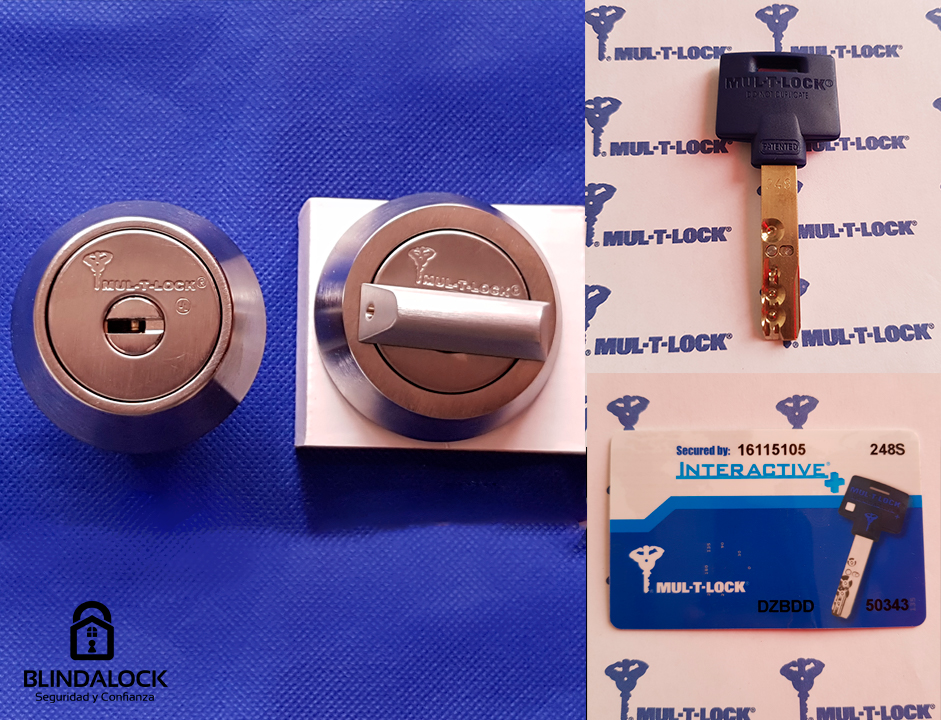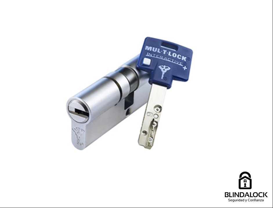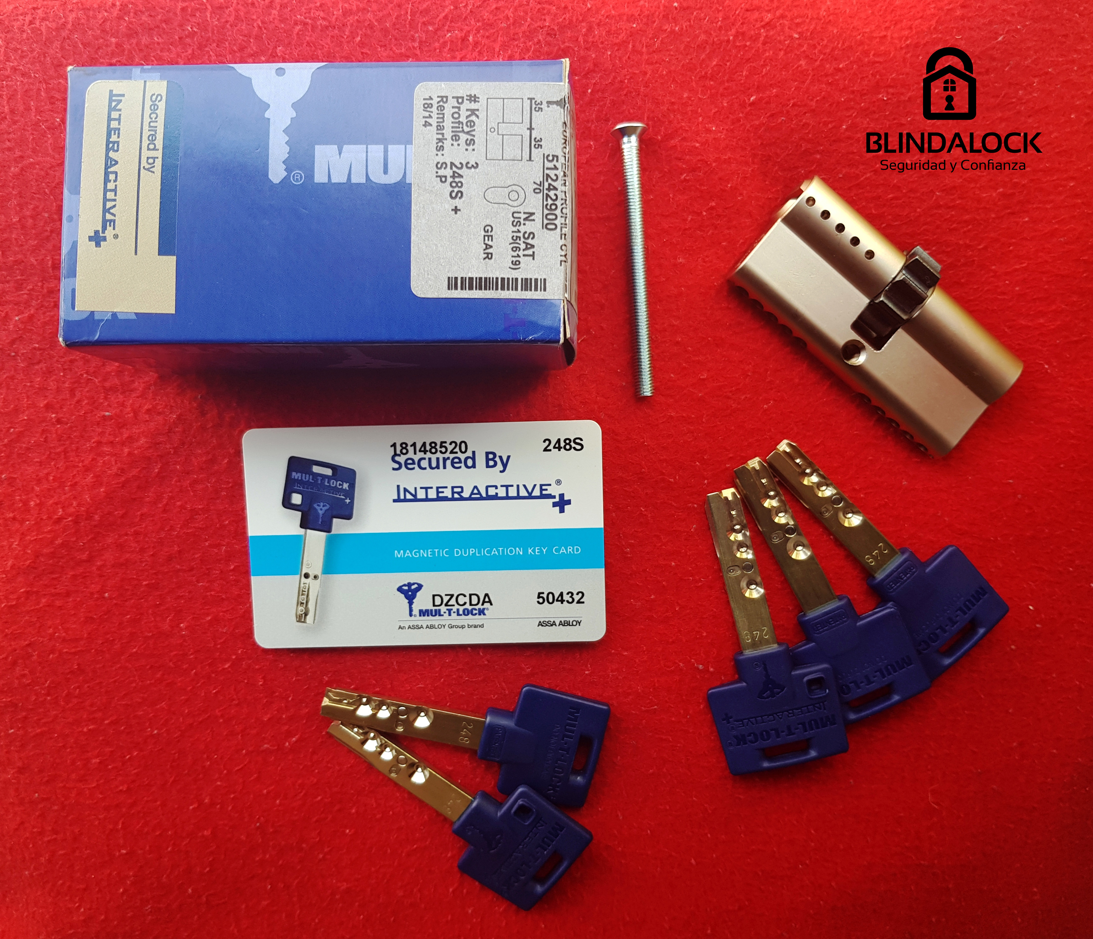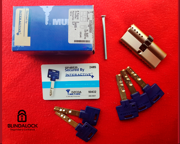 Cilindro alta seguridad Euro con rueda (piñón). Cuenta con 3 ó 5 llaves de copia restringida multipunto interactive + tarjeta para futuras copias.