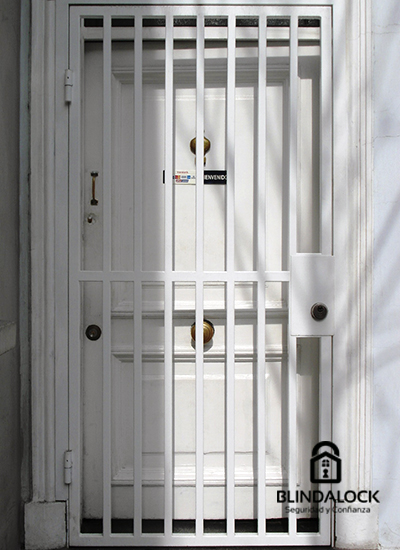 Estas protecciones son fabricadas 100% en perfiles de acero, como mínimo en 2 mm y siempre llevan un cerradura de alta seguridad, generalmente estan estructurados de la siguiente forma: